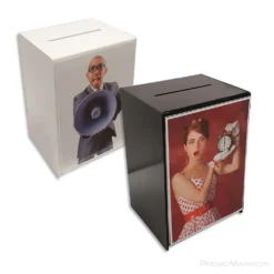 Arvontalaatikko on mainio tapa saada asiakkaisiin yhteys messuilla ja myymälätapahtumissa. Valikoimastamme löytyy useita erilaisia arvontalaatikoita ja palautelaatikoita niin pöydille kuin lattialle. Monissa palautelaatikoissa on infotasku, johon voit itse tulostaa juuri sellaisen viestin kuin haluat. Lisäksi arvontalaatikot voidaan myös teipata joko yksittäisillä selkeillä logotarroilla tai teipata koko arvontalaatikko.