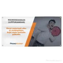 - Polyesterikangas: Kevyt ja laadukas materiaali, joka sopii erityisesti sisäkäyttöön. Polyesterikankaasta valmistetut banderollit ovat helposti taiteltavia ja kuljetettavia.